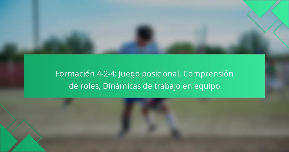 La formación 4-2-4 es un esquema táctico dinámico en el fútbol que combina cuatro defensores, dos centrocampistas y cuatro delanteros, centrándose en un estilo de ataque agresivo mientras asegura estabilidad defensiva. Esta formación depende en gran medida del juego posicional, donde los jugadores deben entender sus roles específicos y mantener una organización espacial para maximizar tanto la efectividad ofensiva como defensiva. La comunicación efectiva y la dinámica de trabajo en equipo son cruciales para ejecutar esta estrategia con éxito en el campo.